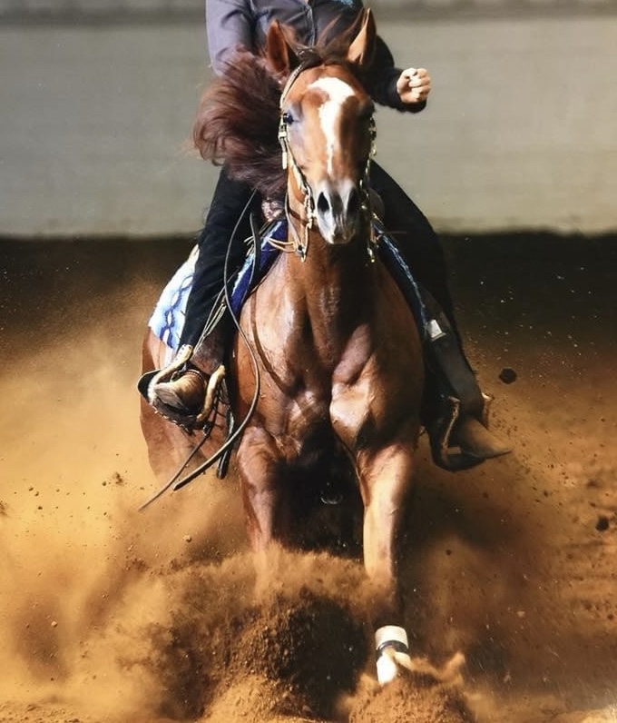 Leyenda Olena is a daughter of Custom Legend out of an own daughter of Smart Chic Olena! She is a finished Reiner who maxed out her NRHA youth points (38) in just 3 shows her first year in the pen with a 1st year rider. She has points with AQHA and ARHA as well! She excels in the ranch versatility classes and has been hauled to every kind of fun show you can think of from reining to barrels/poles to English Equitation. She can sit for months and ride right off. She will ride bridleless and bareback and is good for trail riding.